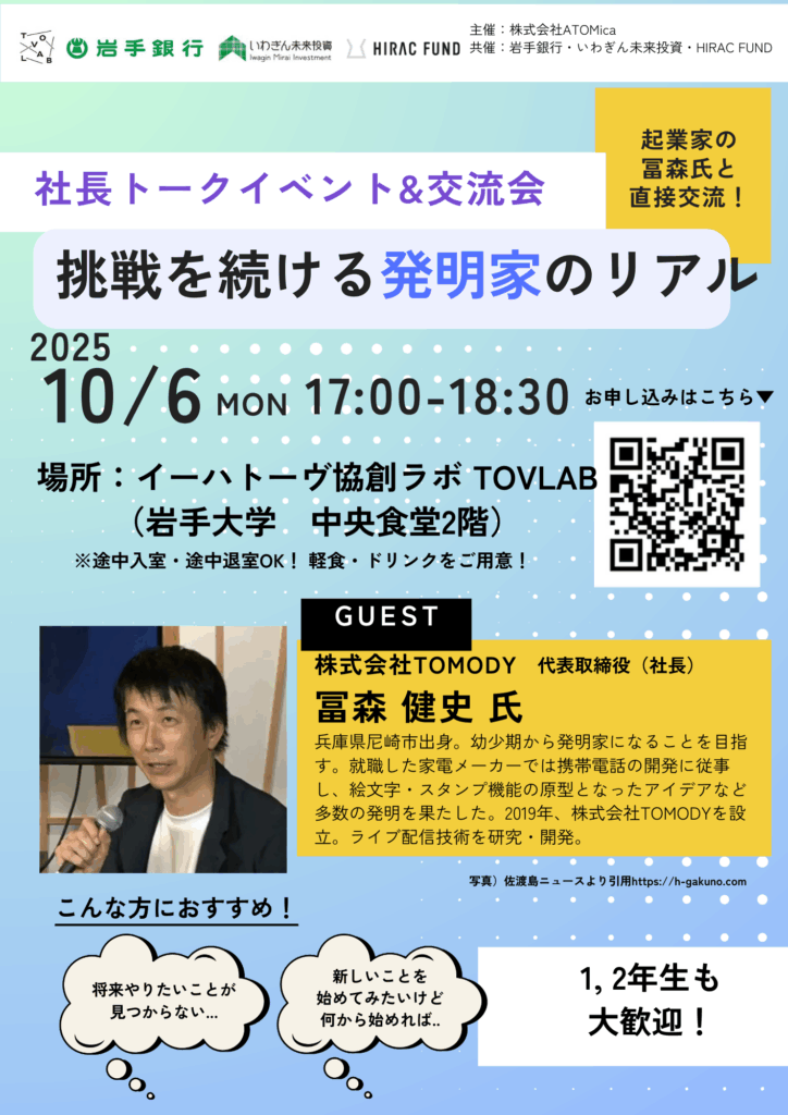 会場:イーハトーヴ協創ラボ TOVLAB(岩手大学 中央食堂2階)