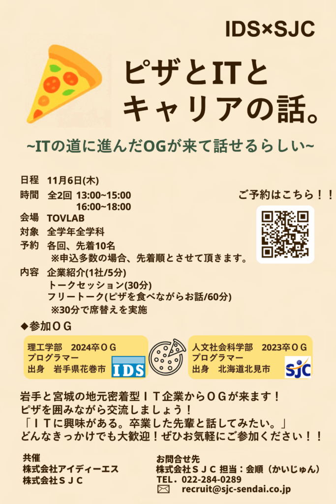 2025年11月6日(木)ピザとITとキャリアの話。〜ITの道に進んだOGが来て話せるらしい〜