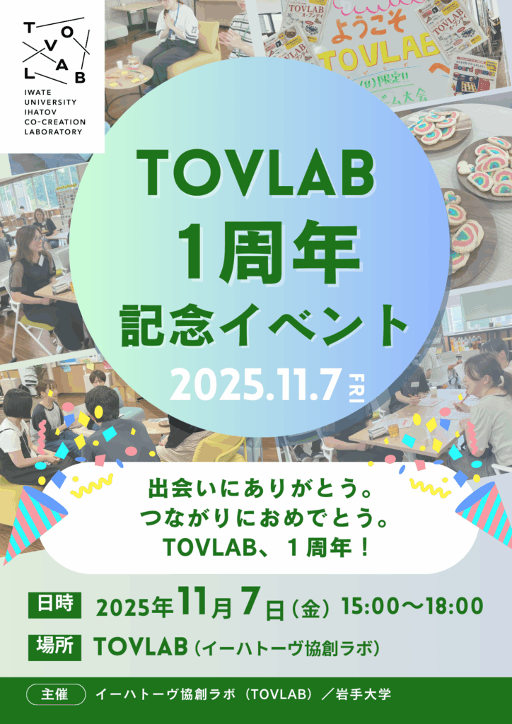 TOVLAB(イーハトーヴ協創ラボ)は、10月18日でオープンから1年を迎えます。