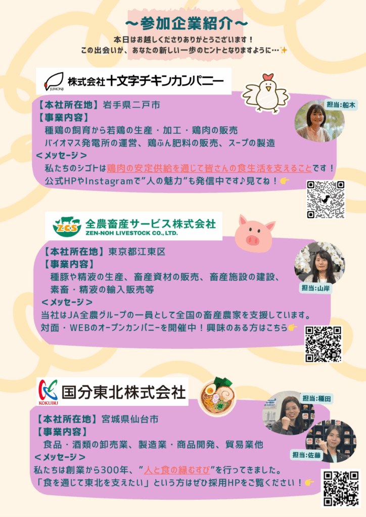 - 食品業界の企業担当者とゆるく直接話せる