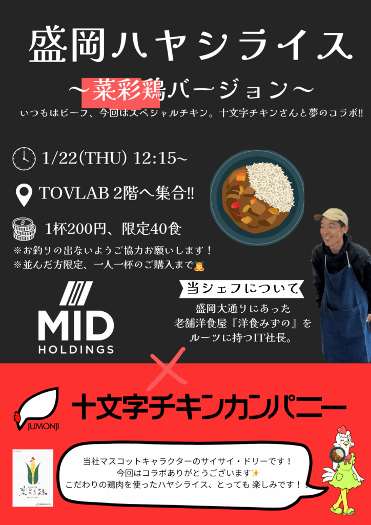 今回は、「盛岡ハヤシライス~菜彩鶏バージョン~」がTOVLABに登場!