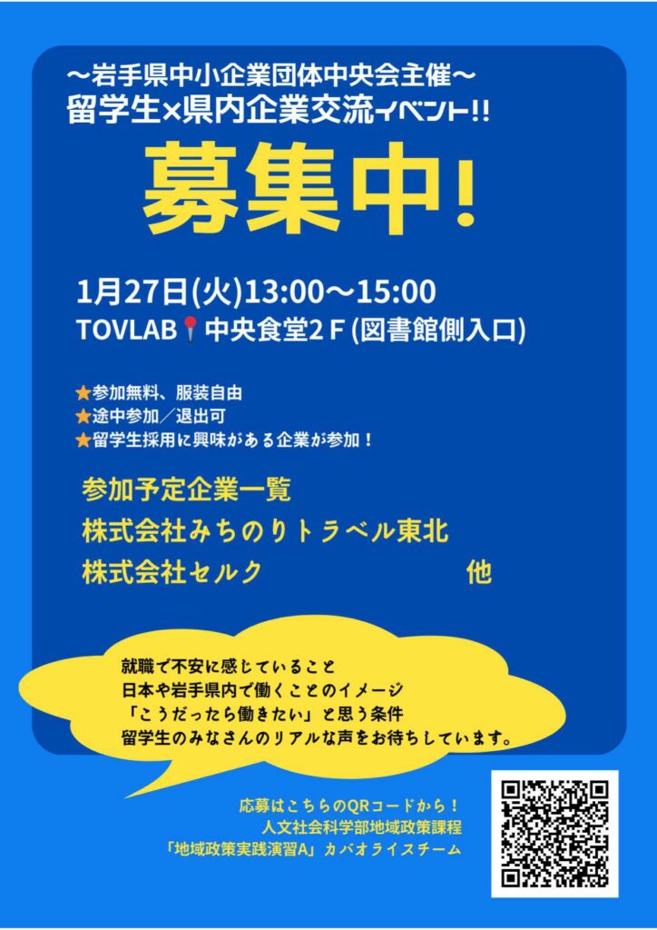 留学生と岩手県内企業をつなぐ交流イベントを開催します✨