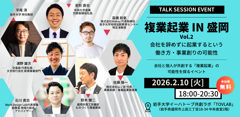 2026年2月10日(火)複業起業 IN 盛岡 vol.2|会社を辞めずに起業する働き方・事業づくり