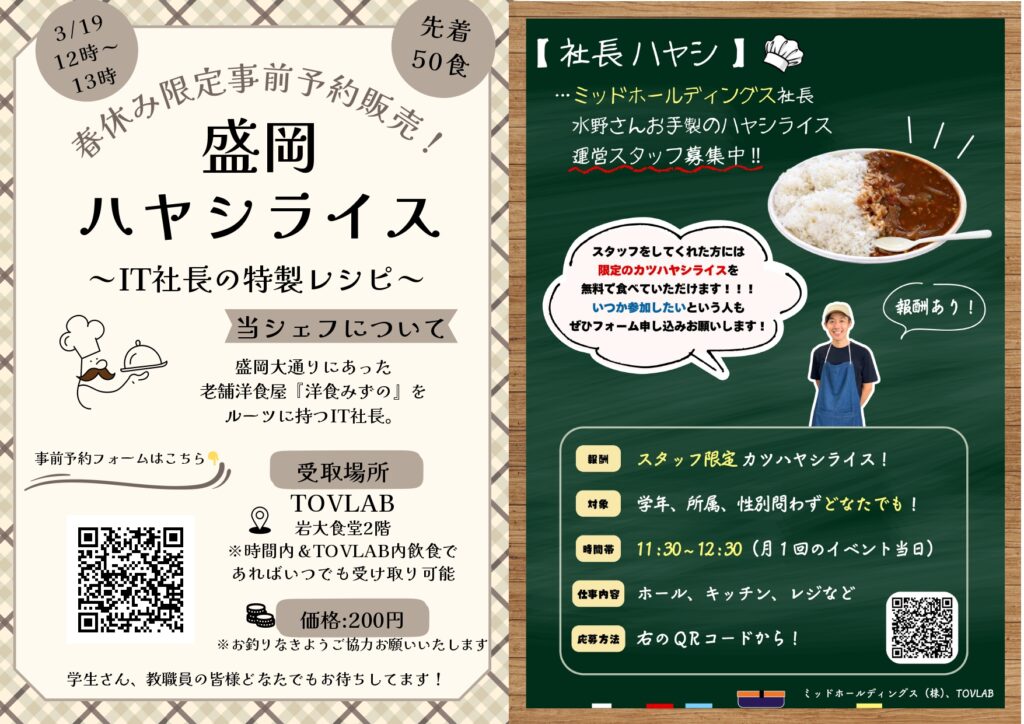 TOVLAB(岩手大学中央食堂2階)で、50食限定の「盛岡ハヤシライス」を販売!